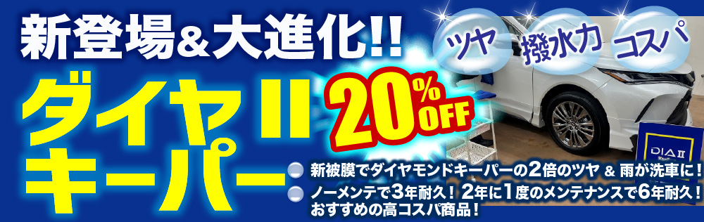 当HPをご覧になったお客様限定で、コーティングの施工料金20%割引を実施中!また、他社にはないお得な特典もお客様にご提供しております。キーパーコーティングをお考えのお客様は、是非、当店にお任せください!
